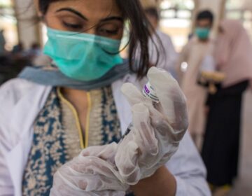 ایک صحت کا کارکن منگل ، 11 مئی ، 2021 کو ، پاکستان کے شہر کراچی میں قائم ہونے والے ایک ویکسی نیشن سینٹر میں آسٹرا زینیکا پی ایل سی کوویڈ 19 ویکسین کی ایک خوراک تیار کرتا ہے۔ مزید پڑھیں