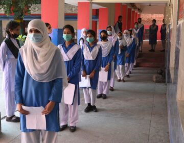 طلباء نے 5 اکتوبر 2021 کو لاہور کے ایک اسکول میں کوویڈ 19 کورونا وائرس کے خلاف فائزر ویکسین کی خوراک کے لئے اپنی باری کا انتظار کرتے ہوئے ایک قطار میں کھڑے ہوئے ، جب حکومت نے 12 مزید پڑھیں