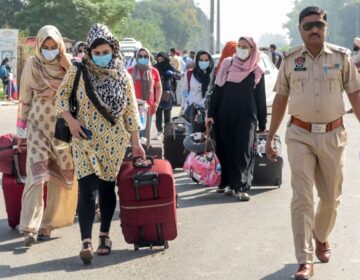 ایک پولیس اہلکار (ر) ہندوستانی کشمیری طلباء کو اپنا سامان لے جانے کے وقت لے جاتے ہیں جب وہ 30 ستمبر 2020 کو امرتسر سے تقریبا 35 کلومیٹر دور ہندوستان پاکستان میں اپنے کالجوں میں اپنے کالجوں میں واپس مزید پڑھیں
